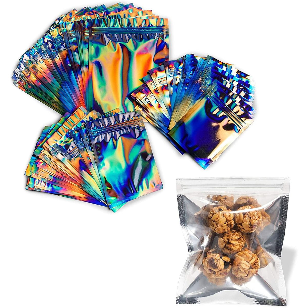 120 Pack Resealable Smell Proof Gift Bags For Candy Small Business Holographic Zip Packaging Food Storage 3 Sizes Walmart Com